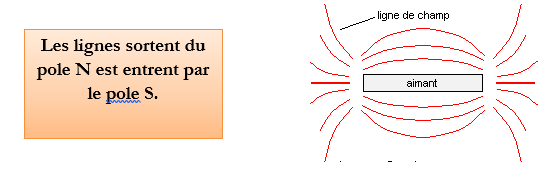 Les lignes de champ magnétique indiquent en tous points du champ la direction et le sens du vecteur B: