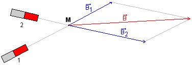 $$\overrightarrow{\boldsymbol{B}}=\overrightarrow{\boldsymbol{B}_{\mathbf{1}}}+\overrightarrow{\boldsymbol{B}_{2}}$$